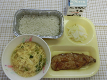 米飯 牛乳 さんまの蒲焼き 水菜のかきたま汁 大根のレモンづけ
