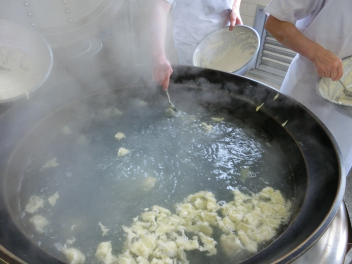 七草すいとん汁のすいとんを作っています。