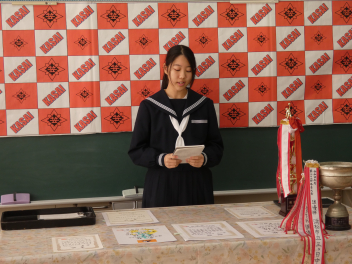 初めに生徒会長から挨拶があり、その後表彰を行いました。