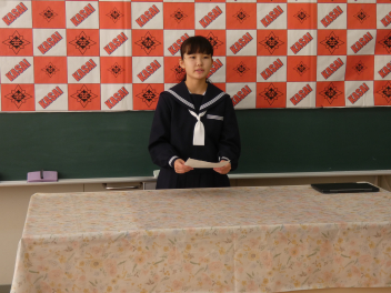 始業式では、各学年の代表生徒が2学期までを振り返り、3学期の抱負について熱く語ってくれました。