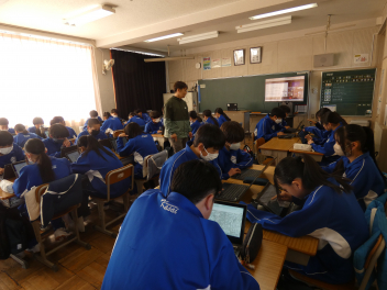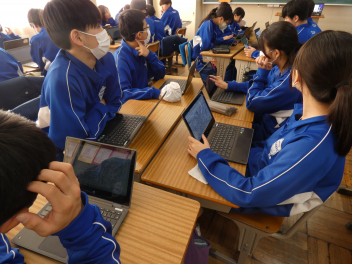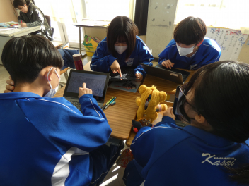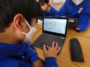 各クラスでそれぞれがタブレットを用い、*DIG(Disaster Image Game)を行いました。