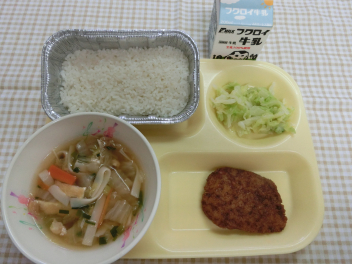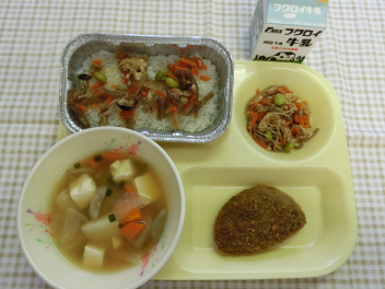 米飯 牛乳 黒はんぺんお茶フライ きのこごはん けんちん汁