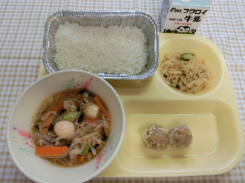 米飯 牛乳 あんかけごはん 肉しゅうまい こりこりあえ