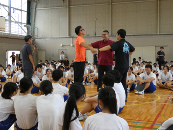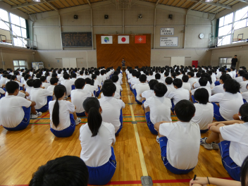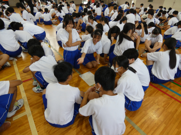 本日の「心の日」は、全校生徒が体育館に集まり、グループエンカウンターを行いました。