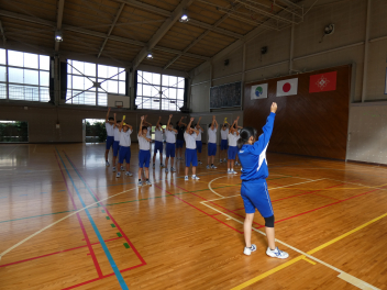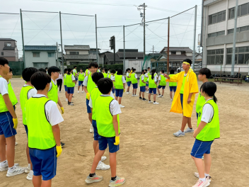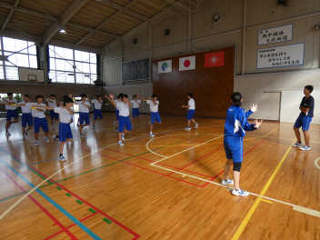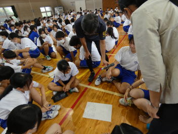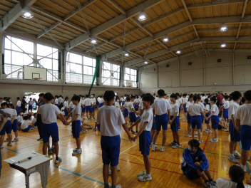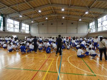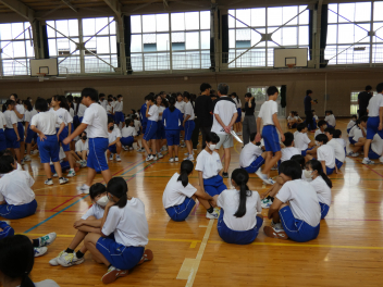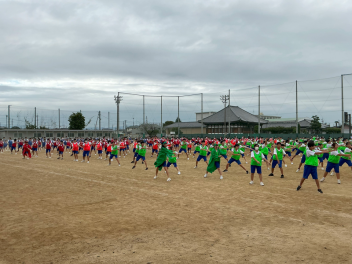 その後、これからの縦割り練習に向け、全校でソーランを踊りました。全校でのソーランはとても迫力がありました。