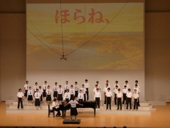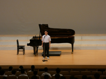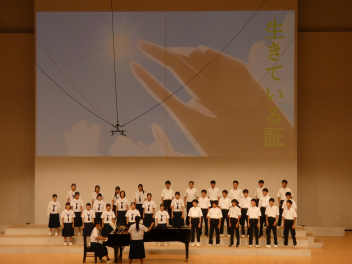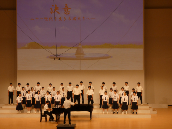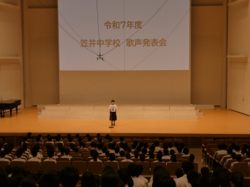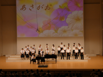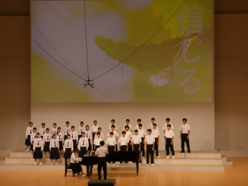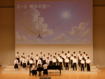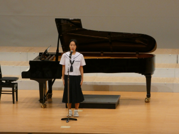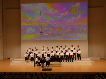 始めに1年生の部の発表を行いました。舞台に立つのは緊張しましたが、堂々と歌い切りました。