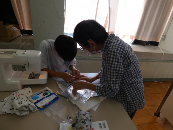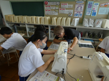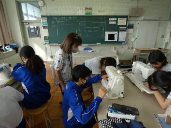 本日も、ボランティアの皆さまに御協力いただき、1年生の裁縫実習を行いました。