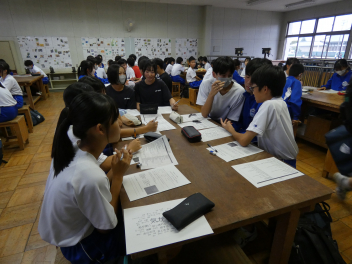 学年も学級も違う生徒同士が話す機会を持つことにより、コミュニケーションの楽しさを味わうことができました。
