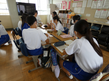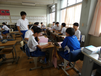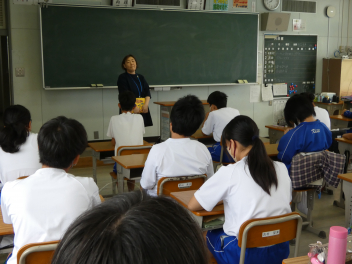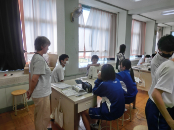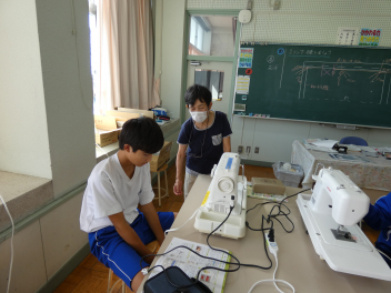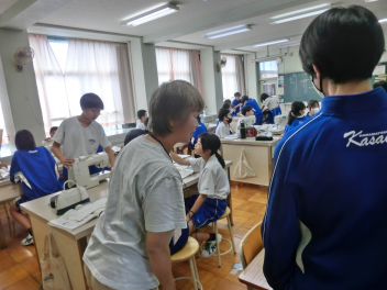 • 本日も、1年生家庭科の授業で、地域のボランティアの皆さまの御協力をいただき、裁縫実習を行いました。