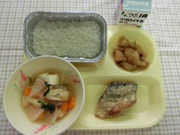 米飯 牛乳 さばの唐揚げ じゃがいもの土佐煮 五目汁