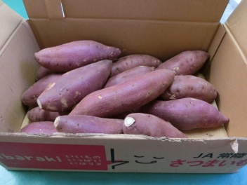 今日のさつまいもは「栗かぐや」という品種です。栗のようにホクホクした食感と鮮やかな黄金色の果肉が特徴です。