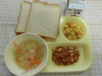 パン 牛乳 チリコンカン ベジタブルスープ キャラメルポテト