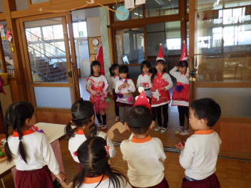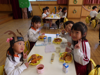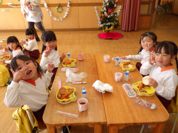 今日はわくわく うきうき ようちえんのクリスマスパーティ