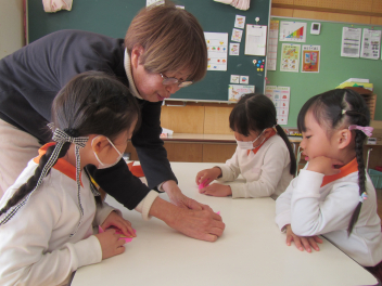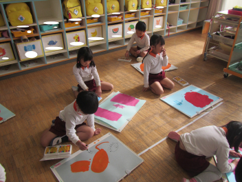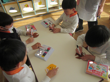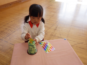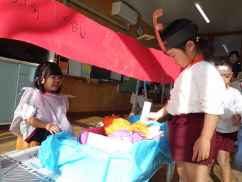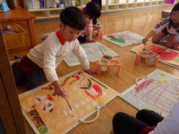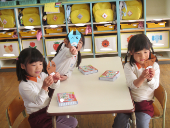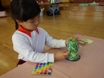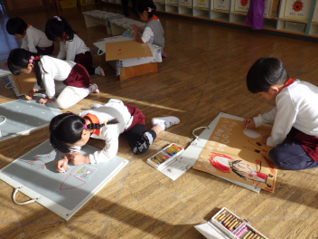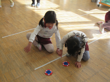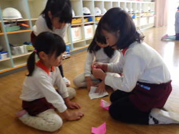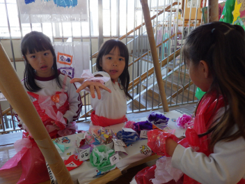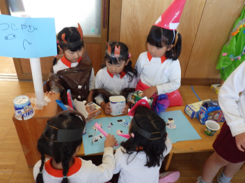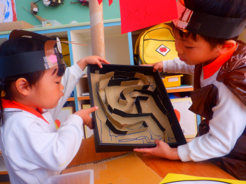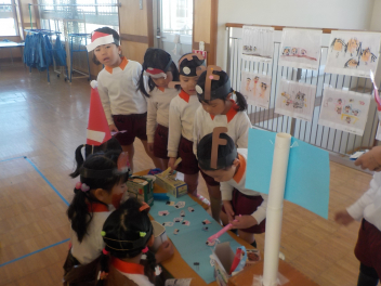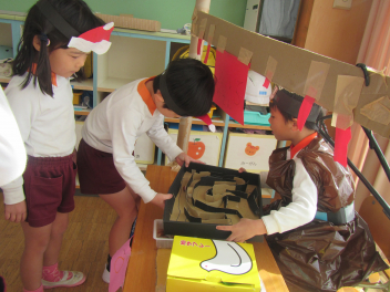 1年生のお店屋から刺激を受け、くじ引きやや、迷路づくり、魚つりをつくっているのです