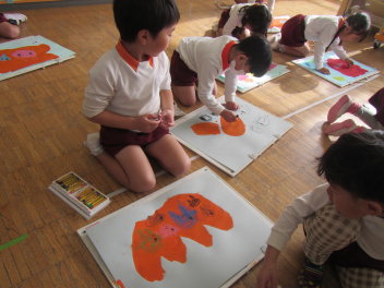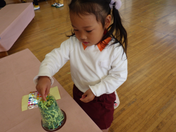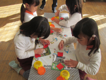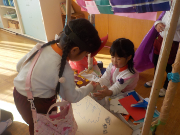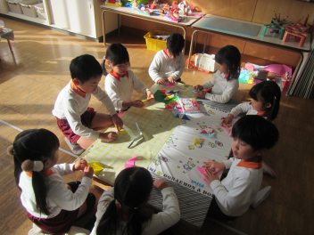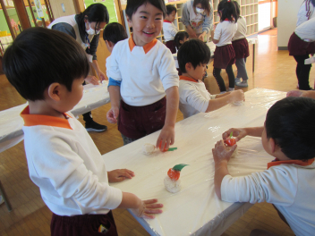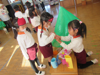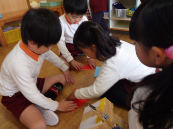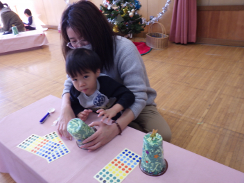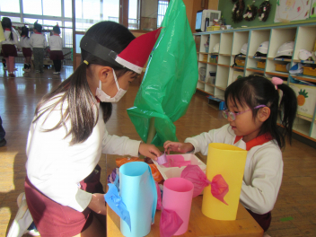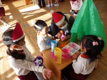 『幼稚園でクリスマスしたいね!』『ぞう組がつくっているお店屋をクリスマスの日にオープンする!!』って張り切り準備を進めだした年長の子供たち