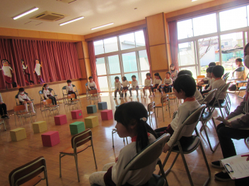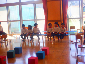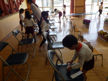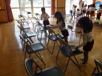 椅子も並べて、誕生会の準備の方法も教えてもらいましたfrown