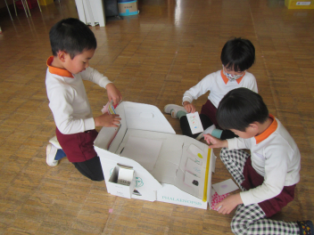 ひよこ組!自分たちの家づくりのために先生に『椅子がほしい』って伝えて自分たちで用意する姿が見られていますsad