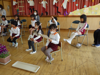 うさぎ組ひよこ組の修了式にぞう組の子供たちも“ひよこ組とうさぎ組の大きくなった姿”を見に来てくれましたfrown