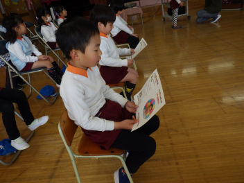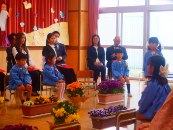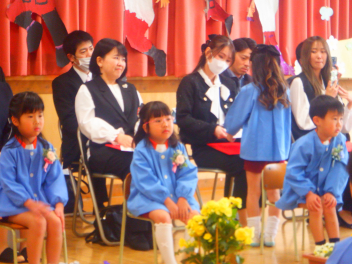 卒園式に招待されたうさぎ組、ひよこ組のこどもたちfrown