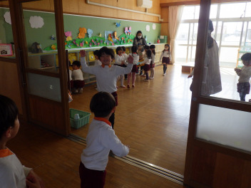 うさぎ組はぞぞう組に、ひよこ組はうさぎ組に