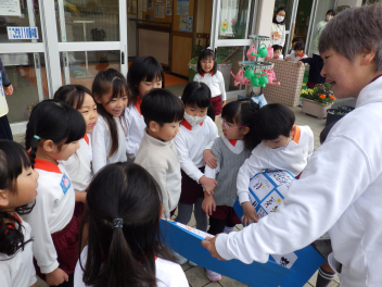 いつも正門でこどもたちの安全を守ってくださる地域の方、幼稚園の草を取ったり畑をつくってくださるシルバーさん。