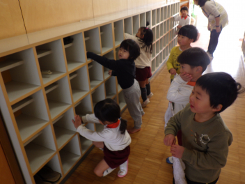 いよいよ1つ大きいクラスの部屋に自分の荷物を引っ越しますsad