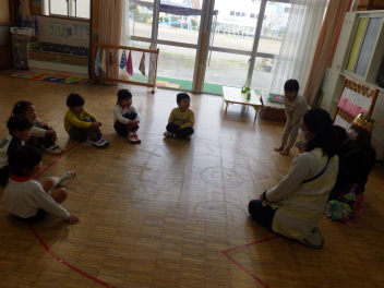 やり方や話す言葉を丁寧に教えるぞう組のこどもたちsad
