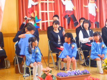 地域のみなさん、校長先生が子供たちの門出を一緒にお祝いしてくださいましたlaugh