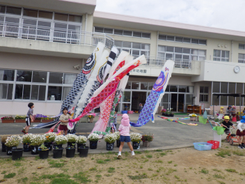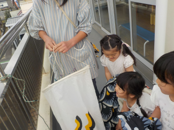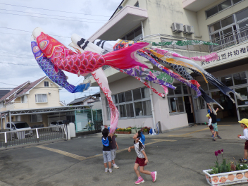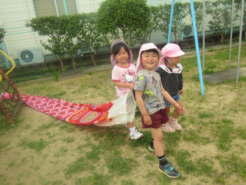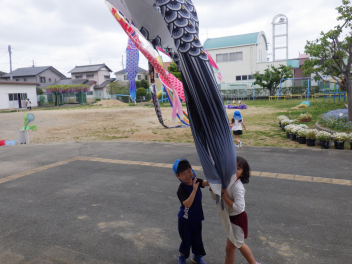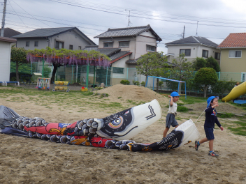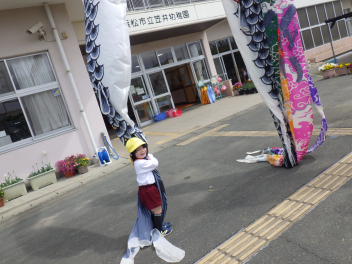 幼稚園でもこいのぼりを掲げてみました