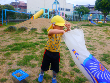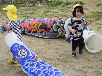 たくさん走ってこいのぼりのお腹がぺっちゃんこfrown