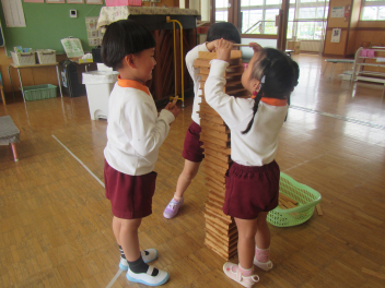 どうしたら落ちないのか、小さい子にはどうするかみんななら決めれるかも!と、投げかけてみました。