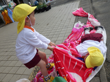 こいのぼり散歩を楽しんだひよこ組は、こいのぼりがよく見えるところにお家ができました