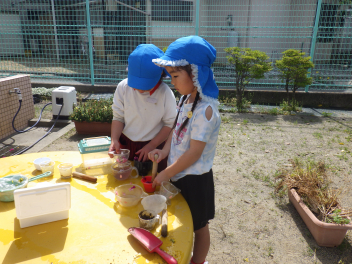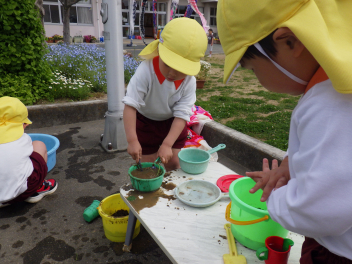 自分のやってみたいものや遊びに触れたり見付けたり、一人一人がうごきだしましたfrown