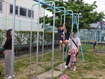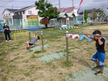 毎日、鉄棒に挑戦してみる姿がwink
