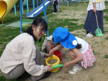 『バッタ見付けた!!』『ここにはアリもいるよ!』『てんとうむしだ!』