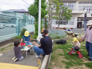 春の草花が園庭に咲いていますfrown