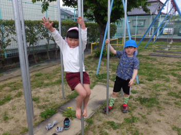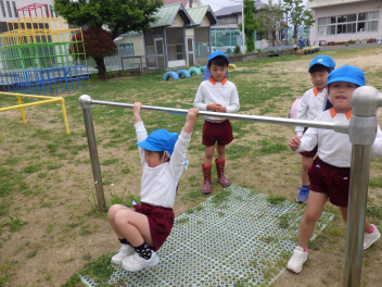 ぞう組のみんなは鉄棒をぎゅって握っているね、手の力あるのかも