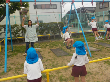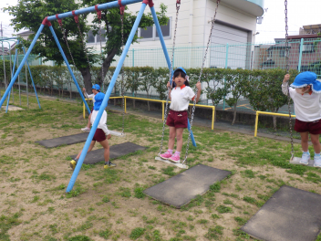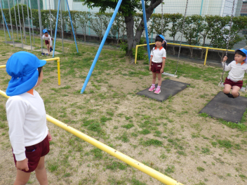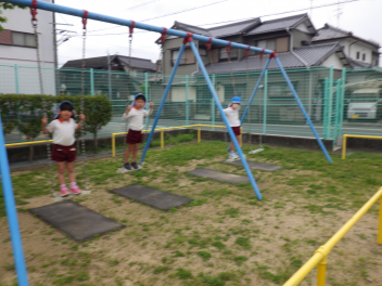 ②ゆっくりこぐ!すぐに止まれるスピードで!(小さい組さんがブランコに来た時に止まれるように)