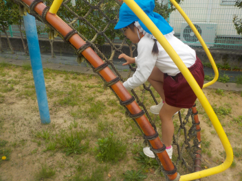 幼稚園のいろんな遊具を見ると・・ぎゅって力がないと落ちてしまうものがいっぱいだ!