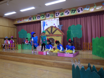 白雪姫の劇を最後まで見ることができてひよこ組もうさぎ組も大満足