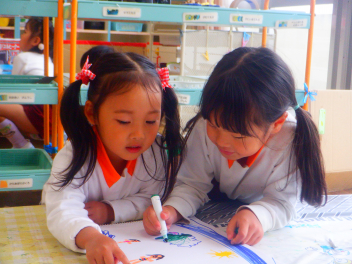 絵本の中のイメージを持ちながら友達とのやりとりを楽しんでいますfrown