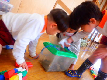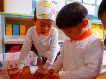 自分たちで材料や用具を考える姿が見られるようになっているひよこ組ですfrown