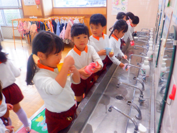 歯磨きの仕方をうさぎ組が見せてあげましたfrown