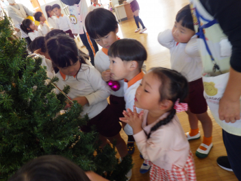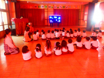 クリスマスの歌のシアターに子供たちは一緒に歌を口ずさむ姿がありましたlaugh