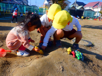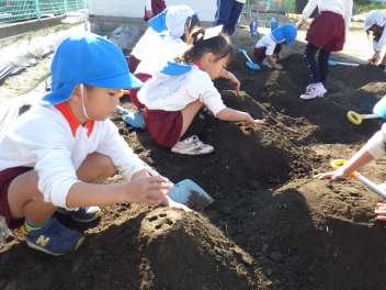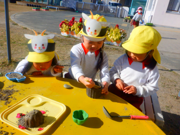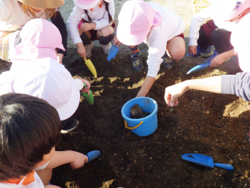 寒い冬を乗り越えて大きくなりますようにの思いを込めてみんなで畑づくりですfrown