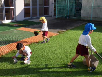 お掃除隊参上です!!とってもきれいになった芝生広場です