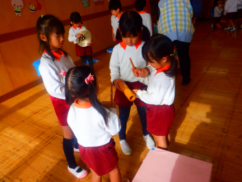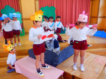 異年齢で入り交ざって、いろんなクラスの劇遊びを楽しみだしています