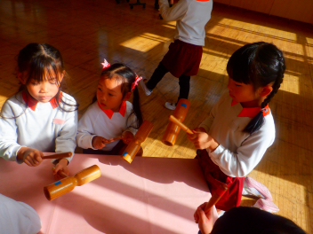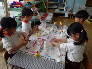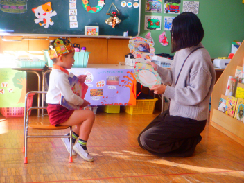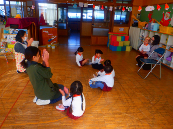 ひよこ組に言葉や動きを教えながら楽しむfrownうさぎ組