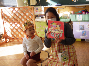 うきうきわくわく!みんなにお祝いされてちょっぴりドキドキの誕生会が始まりましたsad