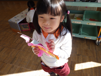 今日は年中うさぎ組が地域の折り紙名人さんに折り紙を教えてもらう日です子供たち!とっても楽しみにしていましたfrown